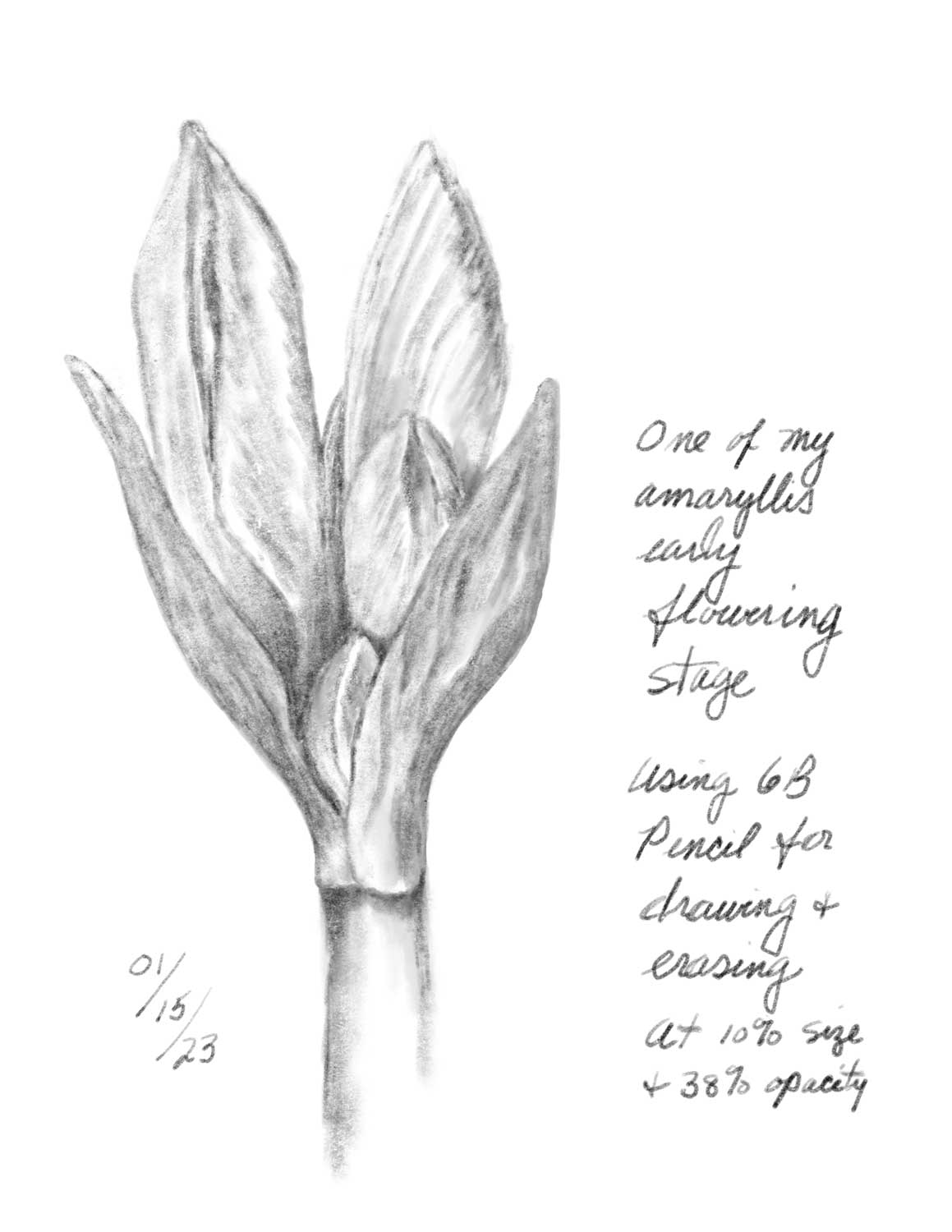 This is the final stage my waxed amaryllis reached before it started to wilt. I used the gouache brush this time for the flower instead of the 2B pencil I used for the first two. Because I blend with the gouache brush tool, you can't even really tell the difference.